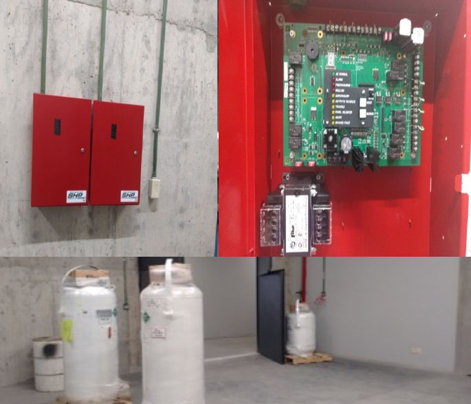 Instalación de tres Sistema de Supresión y Detección de Incendios a base de agente limpio FM-200, en las bodegas de resguardo de obras de arte, Centro Cultural Juan Soriano, en Cuernavaca Morelos.